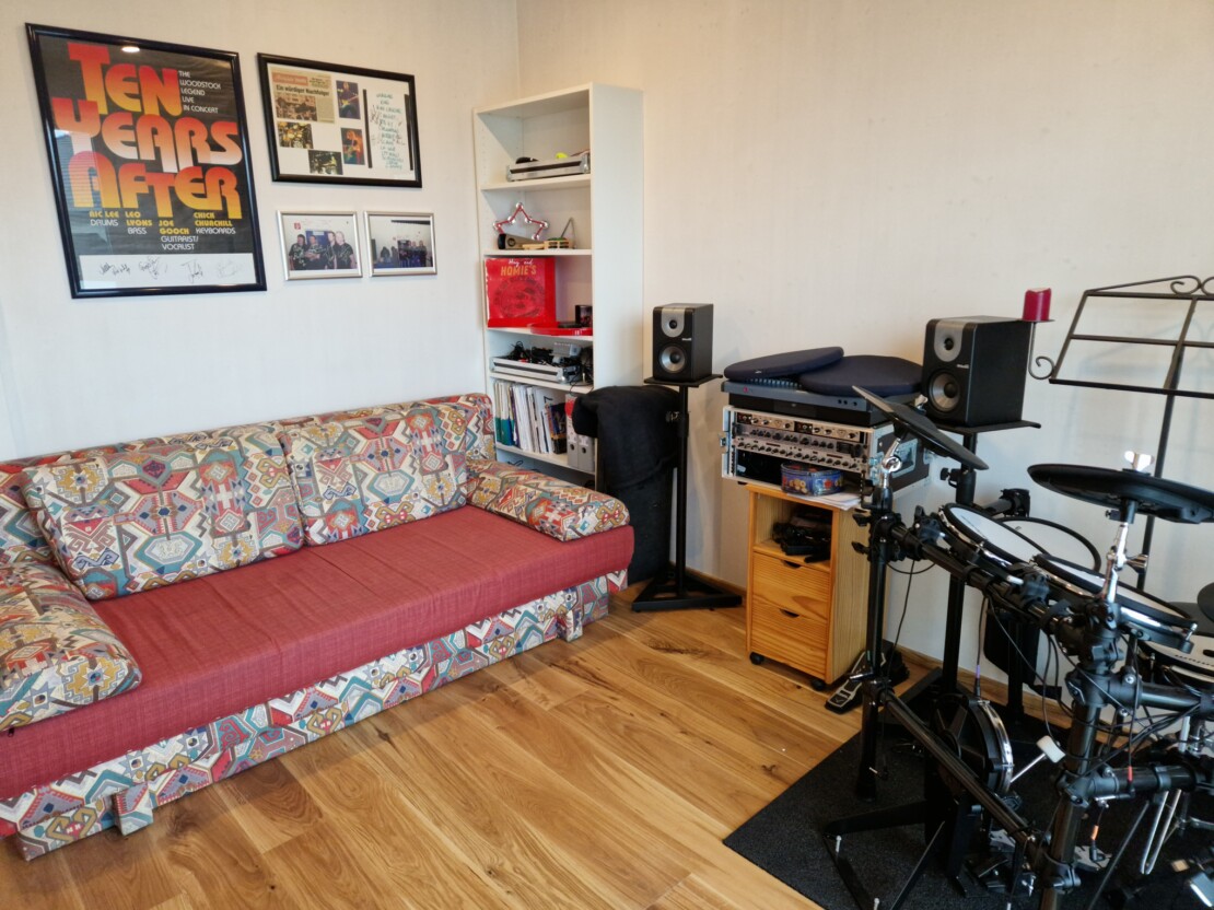 Drumset: Milennium E-drums Set. A regular set is available as well.